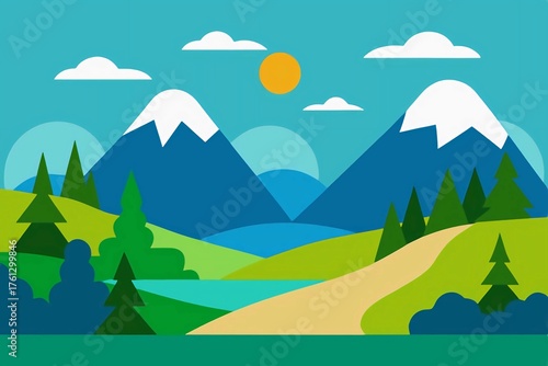 © Rehan, Obraz premium landscape with mountains and trees