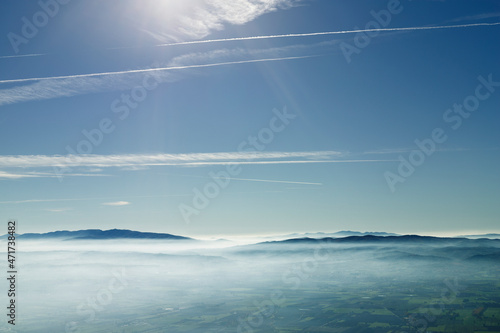 © vittoria, Fototapeta premium Landscape with mountains covered with fog