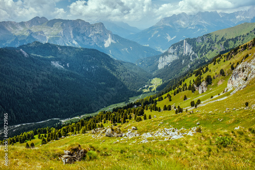 © Alliance, Fototapeta premium landscape with mountains, hills, clouds and trees
