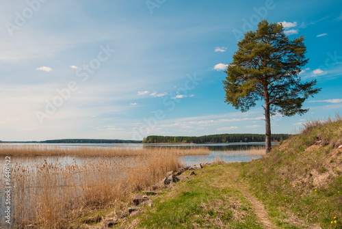 Fototapeta premium Landscape with pines on the shores of Lake Seliger