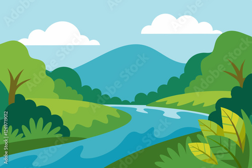 © Radha Rani, Fototapeta premium landscape with river