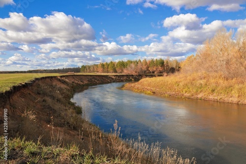 © Алексей Дробышев, Obraz premium landscape with river and blue sky