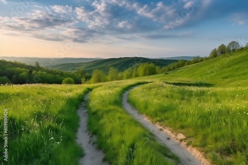 © D, Obraz premium landscape with river and mountains. Generative AI.