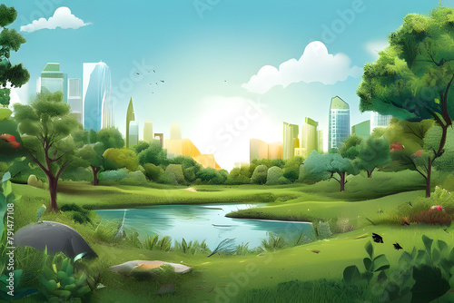 © sehar, Fototapeta premium landscape with river and trees