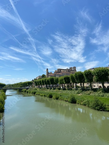 © Anne, Fototapeta premium landscape with river gers and the old town of auch