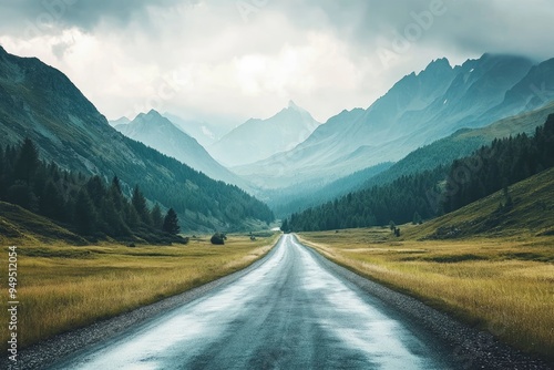 © Dzikrul Husnani, Naklejka premium Landscape with road and mountains , ai