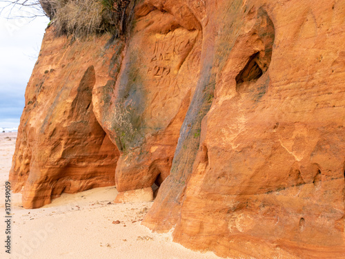 © ANDA, Obraz premium landscape with sandstone cliff fragments on blurred background