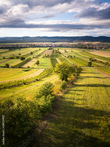 © Ewald Fröch, Fototapeta premium Landscape with sidelight and small village in Burgenland