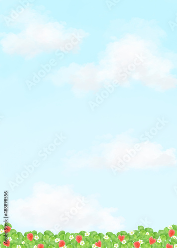 © yuki_acaraje, Obraz premium イチゴのある風景、背景素材/Landscape with strawberries, background material