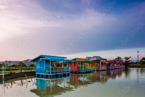 © artpritsadee, Fototapeta premium landscape with sunset over lake