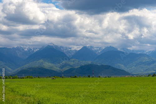 © sebi_2569, Fototapeta premium Landscape with the Fagaras Mountains in Romania seen from a distance