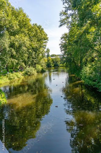 Fototapeta premium Landscape with the image of a river in the city park.
