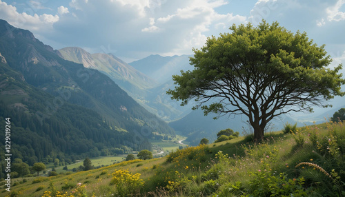© SalmanStock, Obraz premium landscape with trees and clouds