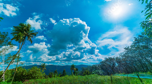 © alex, Fototapeta premium landscape with trees and clouds