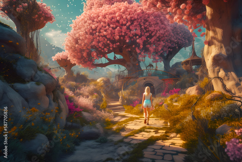 Fototapeta premium landscape with trees and flowers
