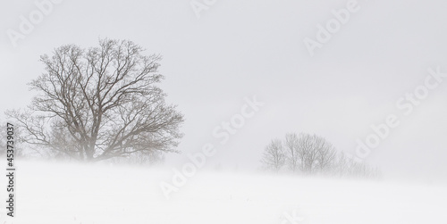 © Bargais, Obraz premium Landscape with trees in winter, during snowfall.