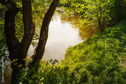 © Roman, Naklejka premium Landscape with trees over the river on a sunny day