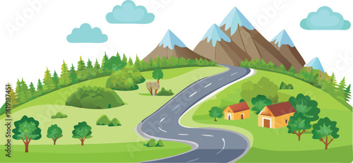 © Rizky, Obraz premium landscape with trees rural cartoon house scene scenery