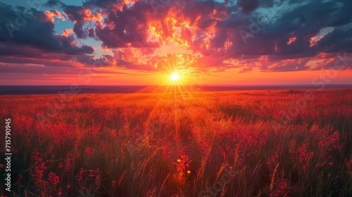 Fototapeta premium Landscape with Vibrant Sunset, a breathtaking sunset over a picturesque...