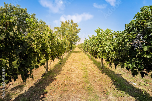 © Franco Nadalin, Naklejka premium Landscape with vineyard and bleu sky with clouds.
