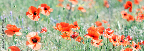 © andrii kornev, Obraz premium landscape with wild poppies growing in the field