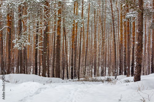 Fototapeta premium Landscape with winter sunny forest.