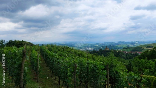 Naklejka premium landscapes of vineyards in montà d'alba, in the Piedmontese Langhe. in the summer of 2022