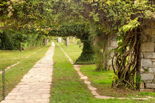 Obraz premium Landscaping in the park summer, view of the walking paths