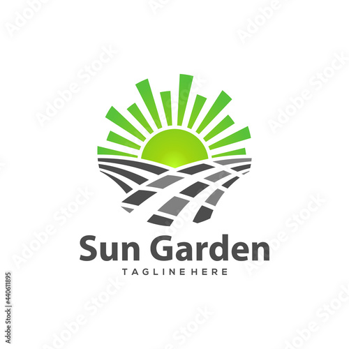 Fototapeta premium landscaping logo with garden sun concept