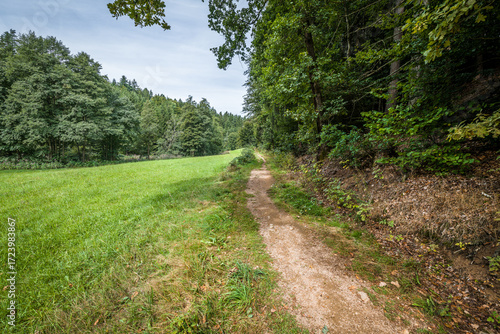 Fototapeta premium Landschaft im Höllbachtal im Naturschutzgebiet bei dem Rundwanderweg in...