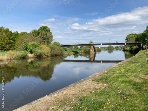 © contadora1999, Fototapeta premium Landschaft mit Brücke über den Fluss Aller in Verden