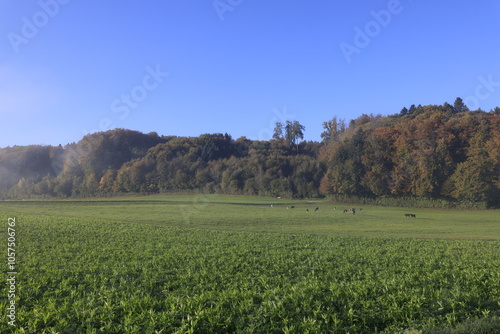 Fototapeta premium landschaft schweiz herbst nebel blauer himmel