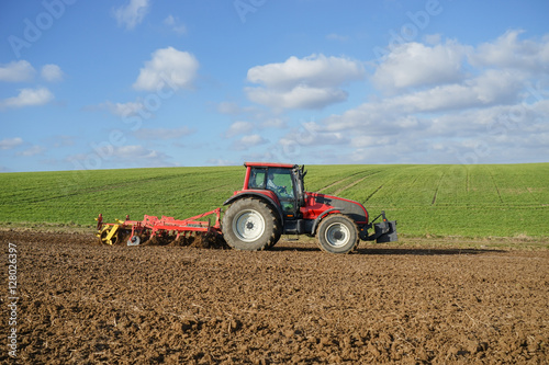 © Countrypixel, Obraz premium Landwirt bei der Bodenbearbeitung im Frühling