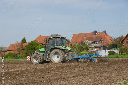 Fototapeta premium Landwirt beim Grubbern eines Feldes