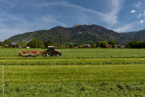 Naklejka premium Landwirt mit Traktor bei der Feldarbeit,Heuwende