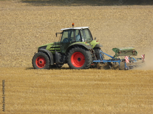 © Aline, Obraz premium Landwirtschaft: Trecker auf einem Feld beim Pflügen