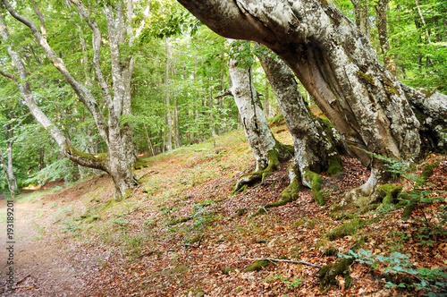 © Dmitry Perov, Fototapeta premium Lane in the forest with fallen leaves
