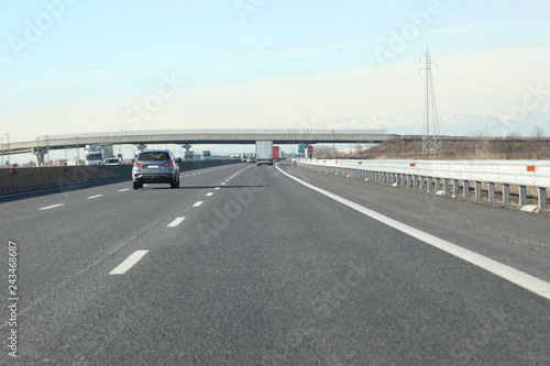 © Andrea, Naklejka premium lanes with cars and trucks on italian highway