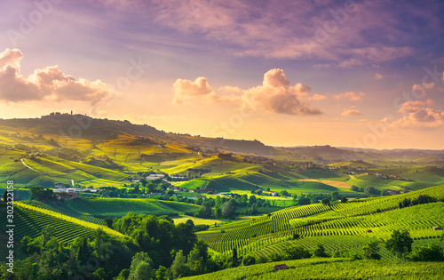 Naklejka premium Langhe vineyards view, Barolo and La Morra, Piedmont, Italy Europe.