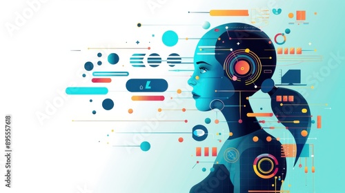 © Exnoi, Obraz premium Language learner using AI for assessment, graphical cues representing analysis and feedback, Language learner, AI assessment
