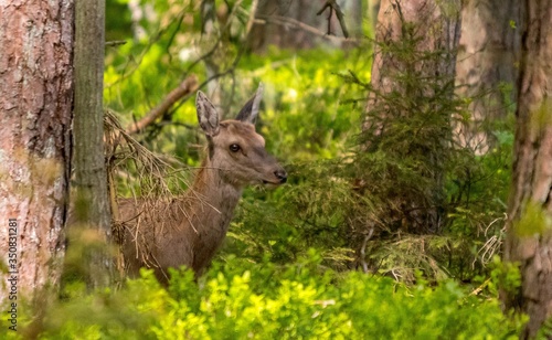 © Piotr, Fototapeta premium Łania jeleń w lesie