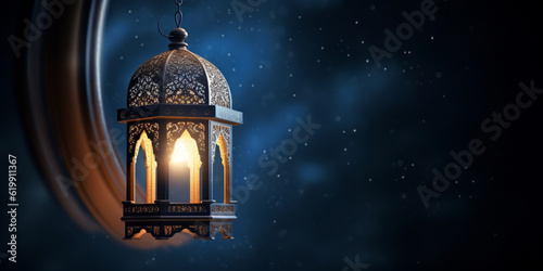 Fototapeta premium Lantern with night light background for the muslim feast of the holy month of...
