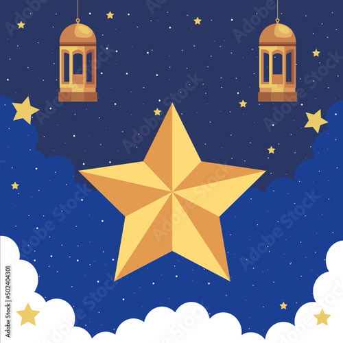 Naklejka premium lanterns and golden star