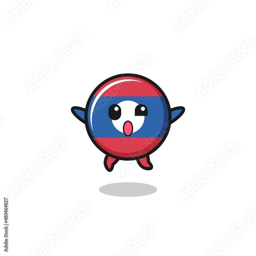 © heriyusuf, Naklejka premium laos flag character is jumping gesture
