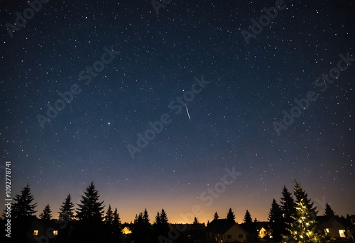 © Art&Design, Fototapeta premium Lapland snowy landscape, Christmas starry night wallpaper
