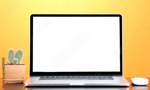 © Africa Studio, Fototapeta premium Laptop and cactus in flowerpot