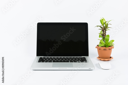 © sorapop, Fototapeta premium Laptop and flower pot isolate