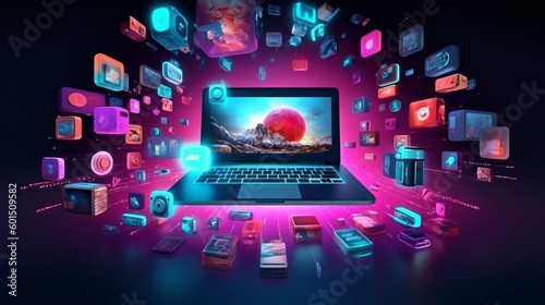 © Mohammad Moiz, Fototapeta premium laptop and internet