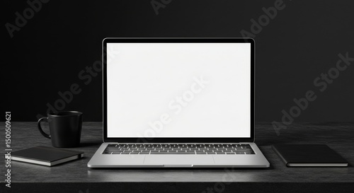 Fototapeta premium Laptop computer mockup on desk dark mood