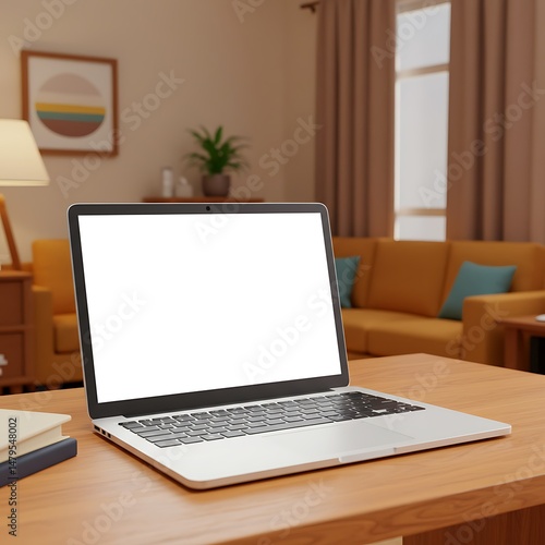 Fototapeta premium Laptop Computer on Wooden Desk in Living Room